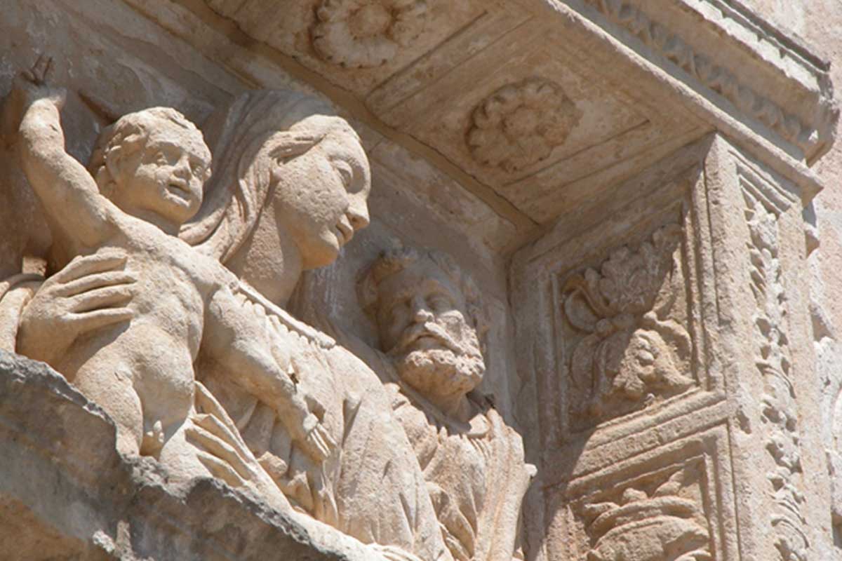 All’interno della Santa Maria della Palomba si possono ammirare statue policrome e medaglioni affrescati, mentre sull’altare si distingue un affresco raffigurante la Madonna dell’Odighítria.
