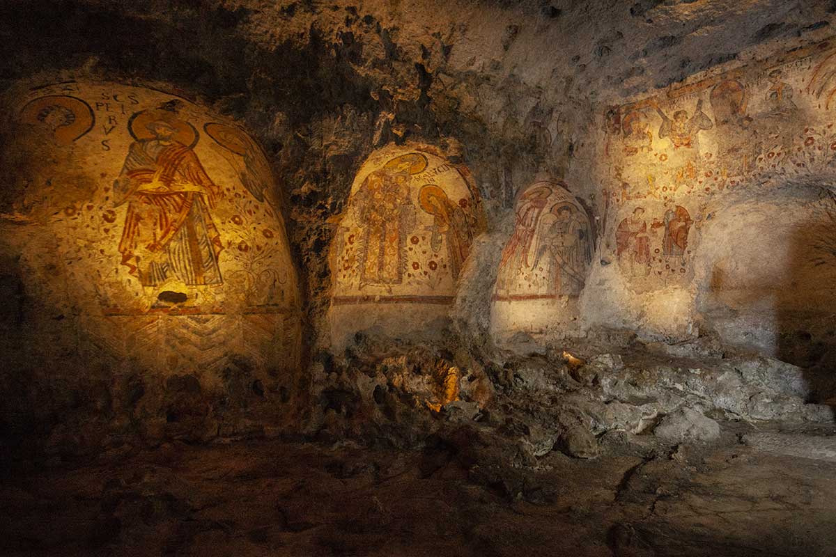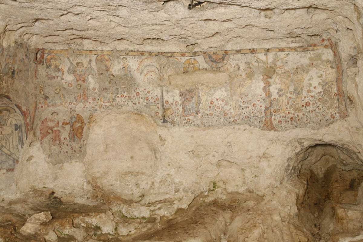 Nei quarantadue metri quadri di una della più suggestive chiese rupestri di Matera, scorre sotto gli occhi di chi la osserva uno straordinario ciclo di affreschi, realizzato cinquecento anni prima di Giotto, raffigurante il racconto biblico dei primi capitoli della Genesi: Dio Padre Creatore, la Luce, le Tenebre, la creazione di Adamo, la nascita di Eva, la tentazione e il Peccato Originale.